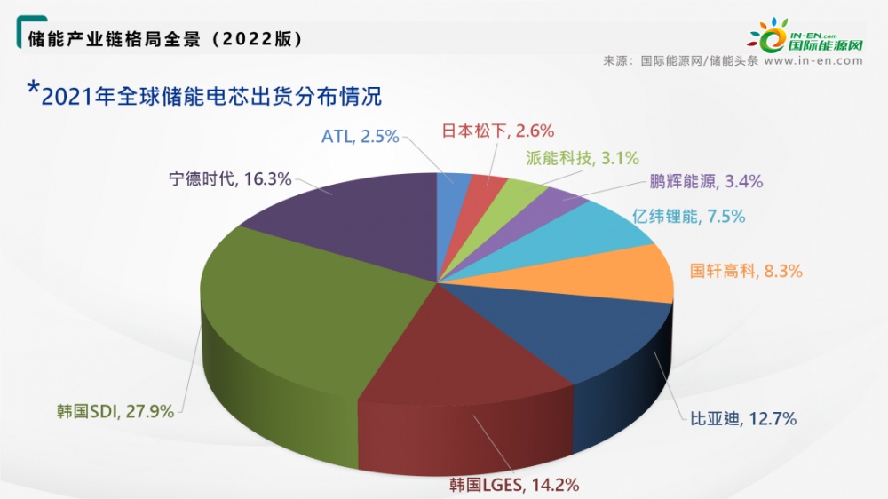 * Distribution of global energy storage cell shipments in 2021